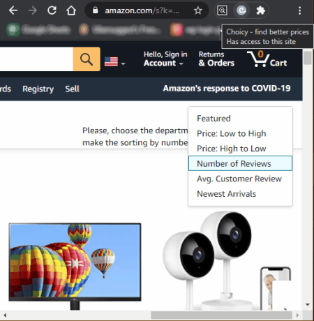 Choicy is another absurd Chrome extensions to sort Amazon products by count of their reviews extension. You tin can download this extension from the Google Chrome Store and start sorting products on Amazon past number of reviews.